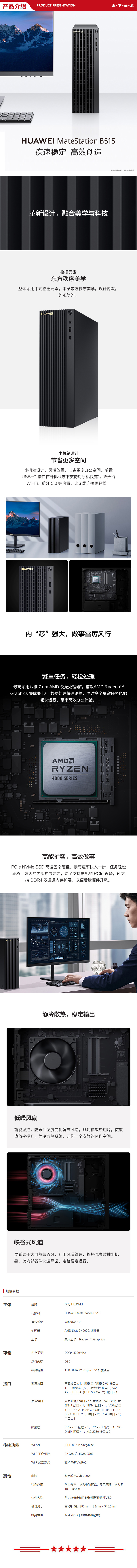 华为 HUAWEI MateStation B515 PUL-WDH9A 台式计算机(AMD i5 8+1TB HDD 集显 Win10H 23.8英寸显示器)