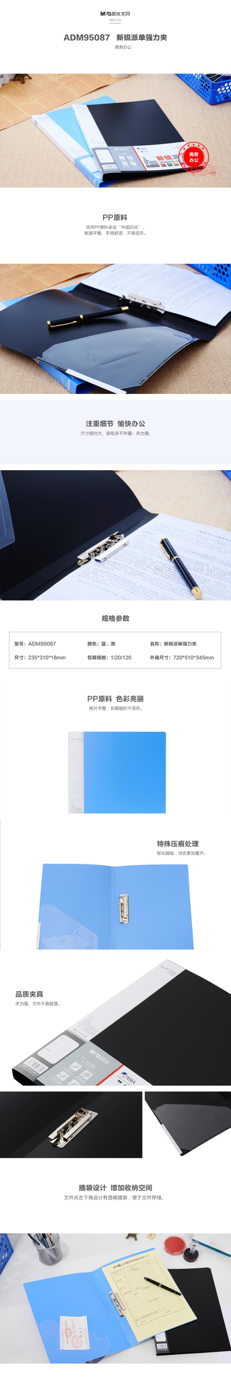 晨光 M&G ADM95087 A4新锐派单强力文件夹黑