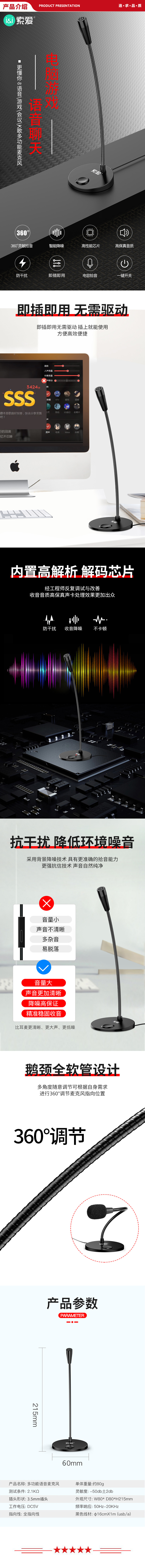 索爱 soaiy L28 电脑麦克风 鹅颈话筒(电竞网课/台式笔记本/桌面会议/主播直播/3.5版无声卡)