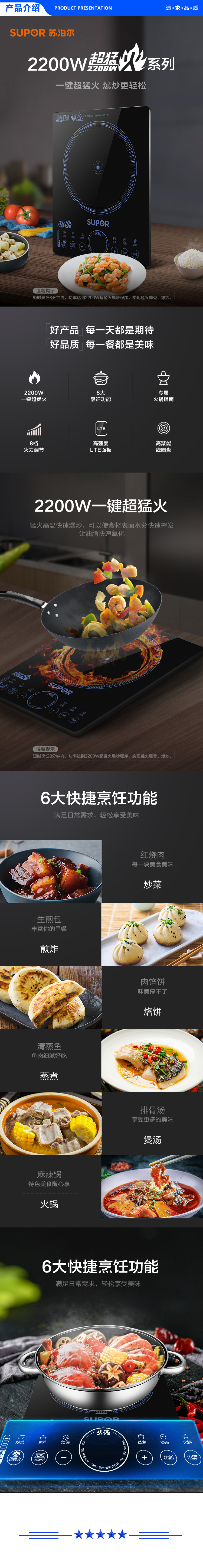 苏泊尔 SUPOR C22-IH90D 电磁炉( 2200W 大火力 防水耐用 面板 智能8档火力 )