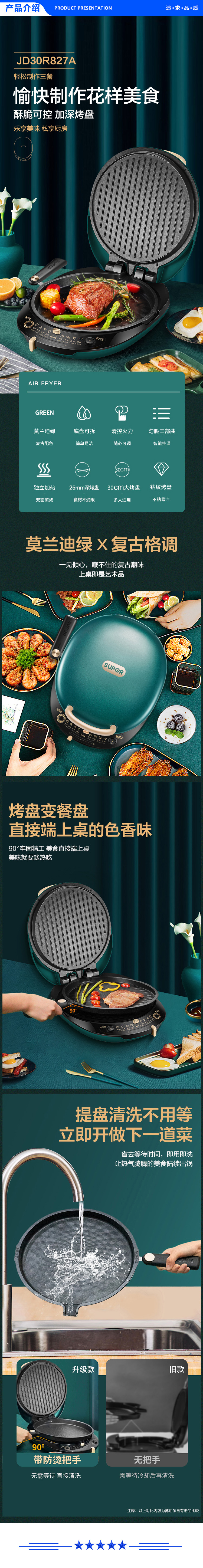 苏泊尔 SUPOR JD30R827A 电饼铛 家用双面加热带把手可拆洗 25mm加深烤盘
