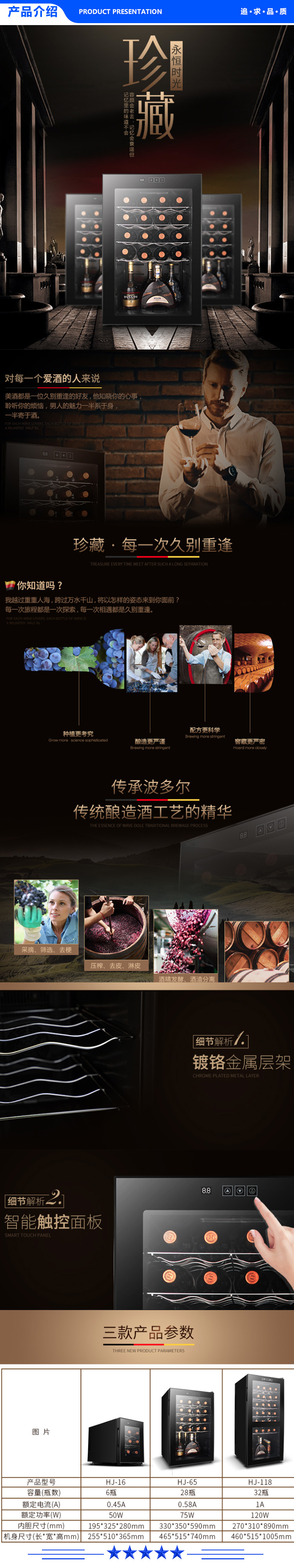 德玛仕 DEMASHI HJ-65 红酒展示柜 家用酒窖级 小型电子智能可做嵌入式 工程款 28瓶装