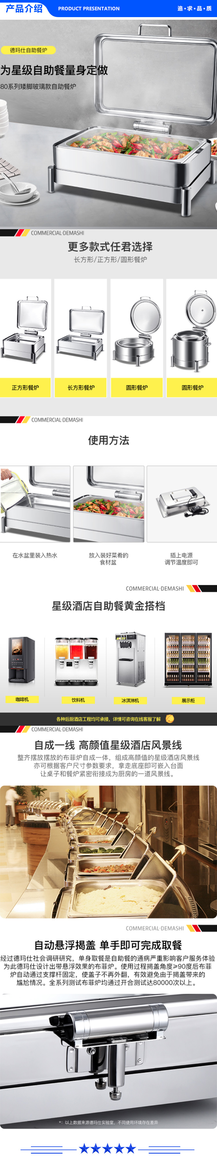 德玛仕 DEMASHI 304-1011A 自助餐炉布菲炉酒精灯炉 电加热翻盖餐炉 304不锈钢 包围款 9L长方形