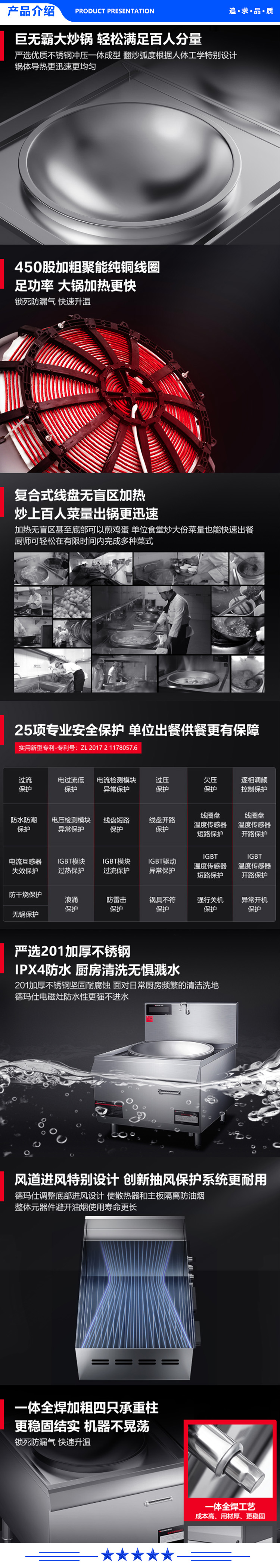 德玛仕 DEMASHIHW-DC20C-08 电磁炉 大功率商用大炒炉大锅灶学校单位食堂 单头电灶具 201材质 80CM大锅