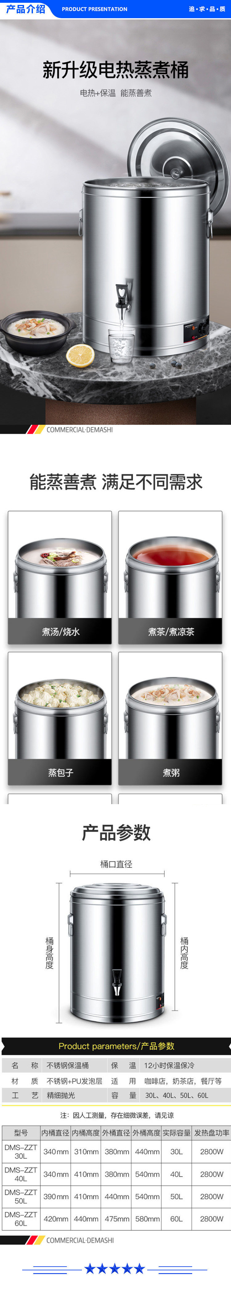 德玛仕 DEMASHI DMS-ZZT40L 开水桶 电热蒸煮桶 商用 不锈钢开水器大容量加热汤煮粥茶水月子凉茶桶蒸煮桶