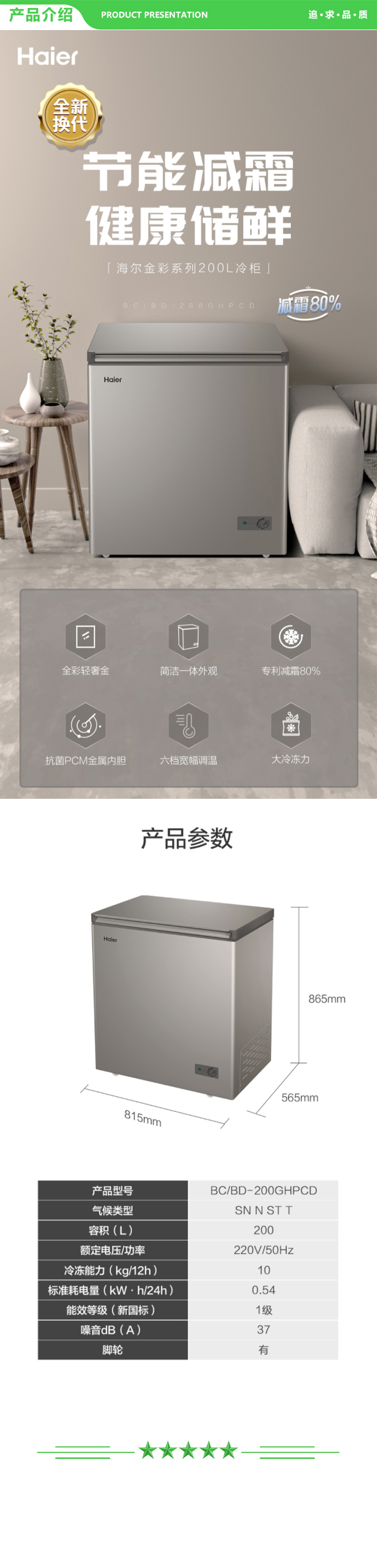 海尔 Haier BC BD-200GHPCD  金彩系列200升低霜小型商用家用冰柜 冷藏冷冻转换冷冻柜母乳冷藏小冰箱冷柜 .jpg送货上门