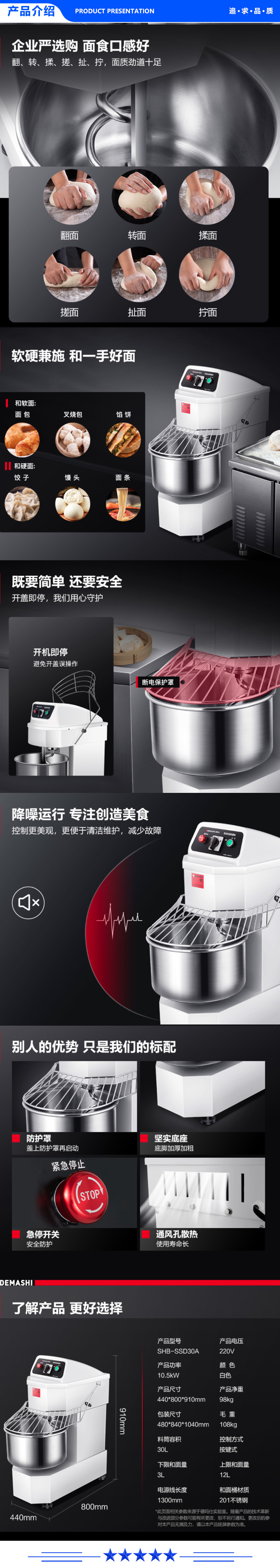德玛仕 DEMASHI SHB-SSD30A 和面机 商用 大容量双动双速多功能揉面搅面搅拌打蛋机器 机械款