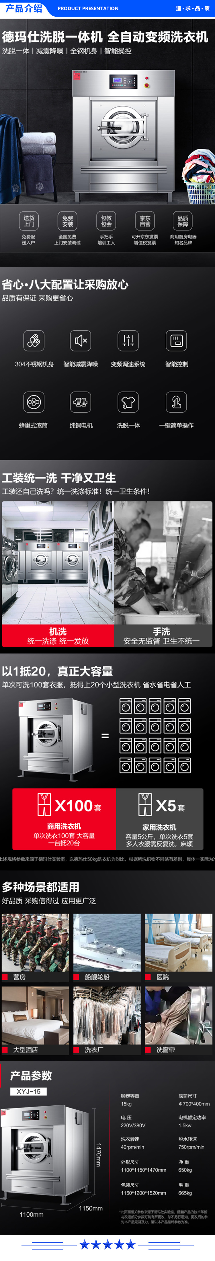 德玛仕 DEMASHI XYJ-15 洗衣机 商用 工业水洗机 15KG全自动大型床单被套洗脱机 15公斤洗脱一体机
