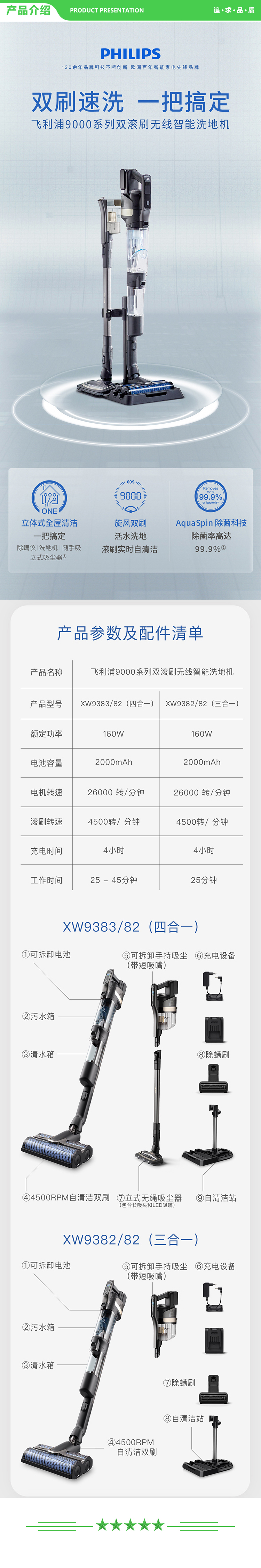 飞利浦 PHILIPS XW9382 82 扫地机 无线智能洗地机9000系列3合1  智能双刷吸拖一体吸尘器 .jpg
