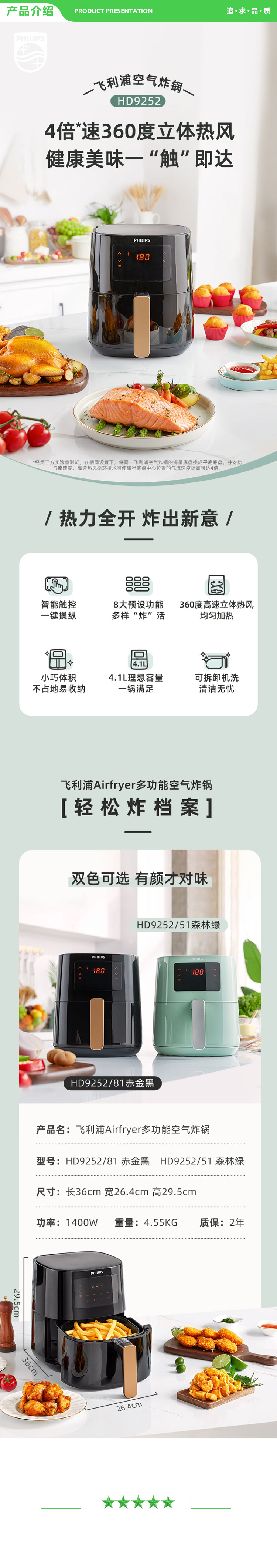 飞利浦 PHILIPS HD9252 81 空气炸锅 无油低脂 电炸锅4.1L全自动多功能大容量 .jpg