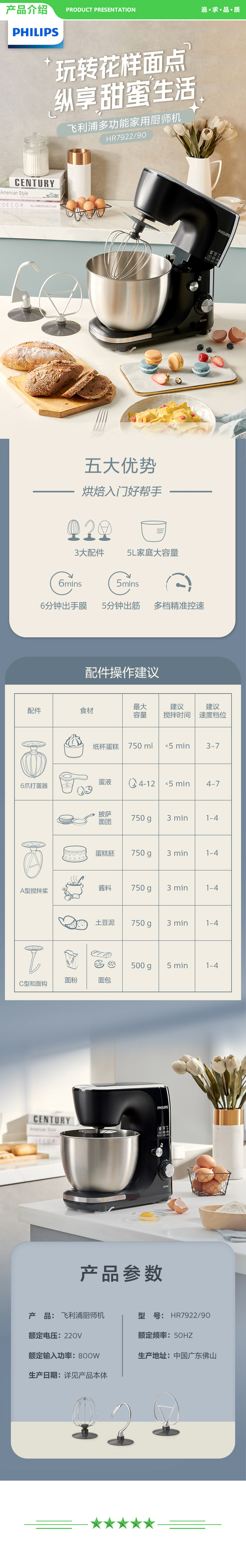 飞利浦 PHILIPS HR7922 90 厨师机 多功能全自动 智能搅拌揉面机蛋器料理压面机 .jpg