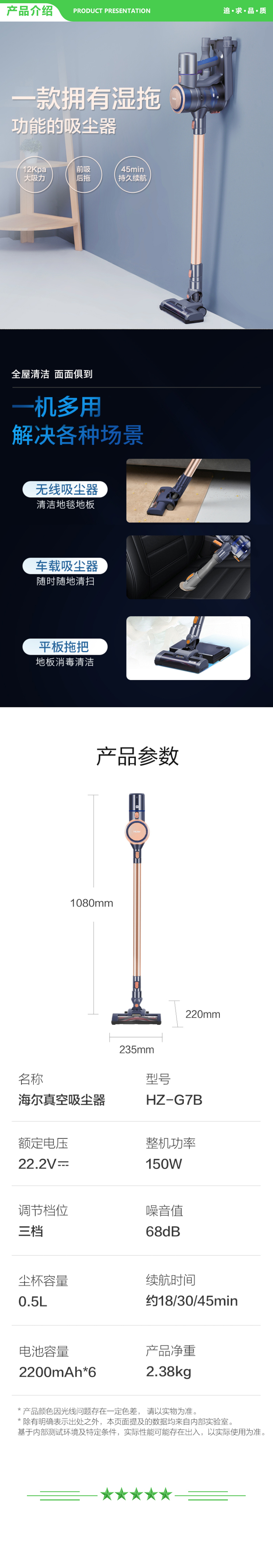 海尔 Haier HZ-G7B 无线手持家用车载吸尘器大吸力 轻量机身 立式便携挂墙 一键倒尘三挡调速长续航 .jpg