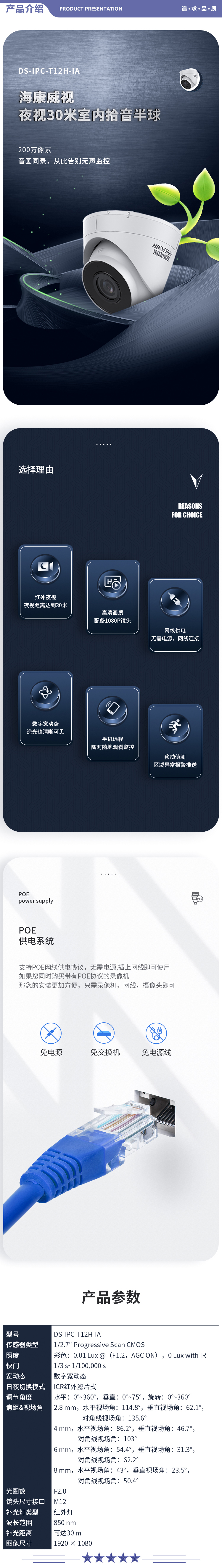 海康威视 HIKVISION T12H-IA 4MM 监控摄像头200万室内外监控摄像机红外夜视30米