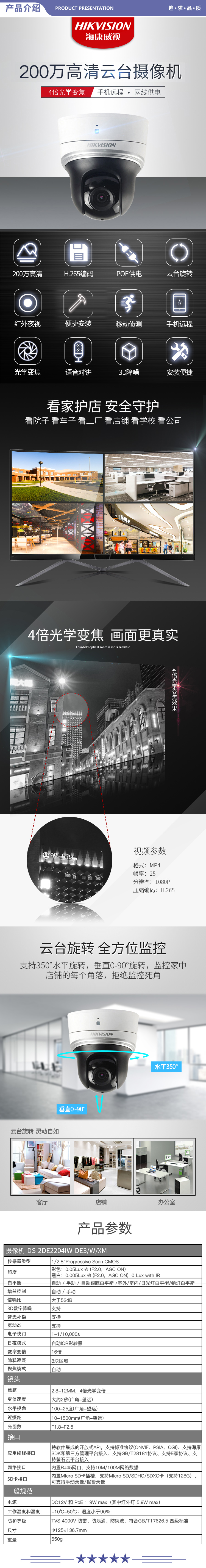 海康威视 HIKVISION 2204IWDE3W 监控无线摄像头200万wifi红外夜视手机远程室内室外高清语音 带256G内存卡