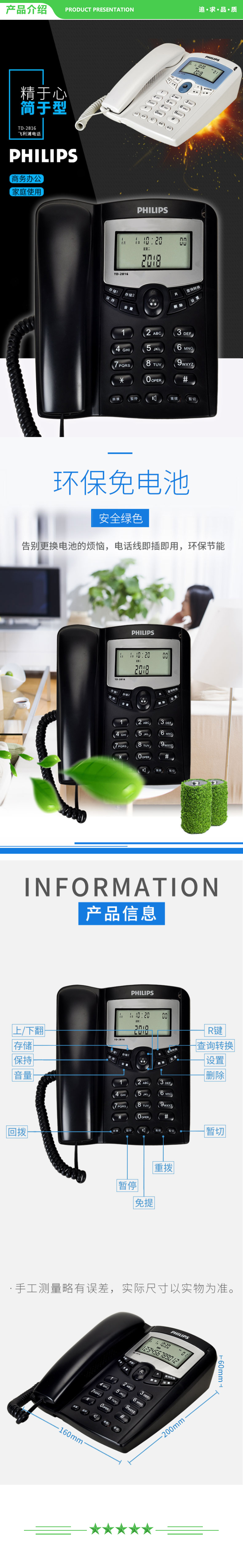 飞利浦 PHILIPS TD-2816 电话机座机 固定电话 办公家用 免电池 来电显示 双插孔 (白色) .jpg