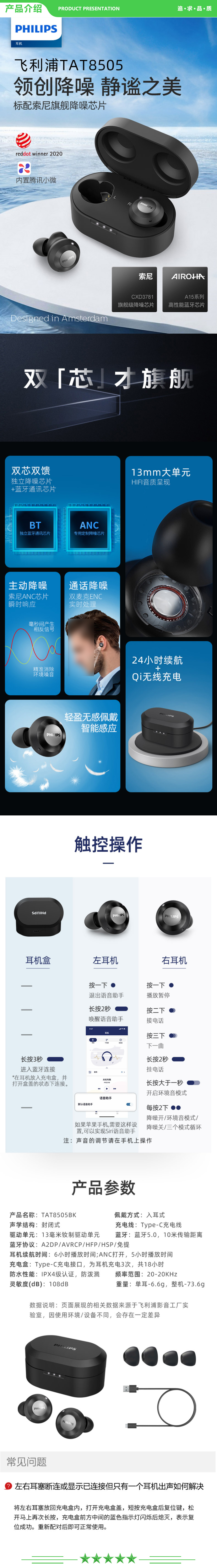 飞利浦 PHILIPS TAT8505 真无线蓝牙耳机 主动降噪耳机升级款双芯双馈 黑 .jpg