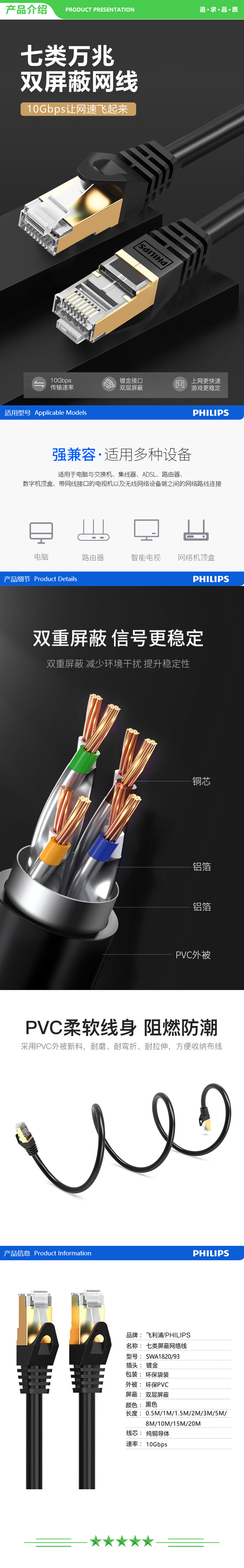 飞利浦 PHILIPS SWA1820 93-30 七类网线万兆网络跳线CAT7类双屏蔽连接线 监控布线 30米 .jpg