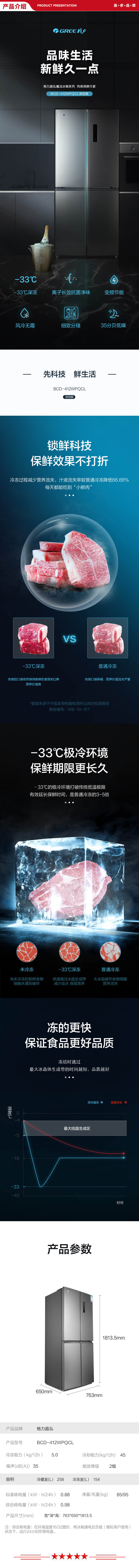格力 GREE BCD-412WPQCL 晶弘412升电冰箱 变频风冷十字对开门 纤薄家用 深空银