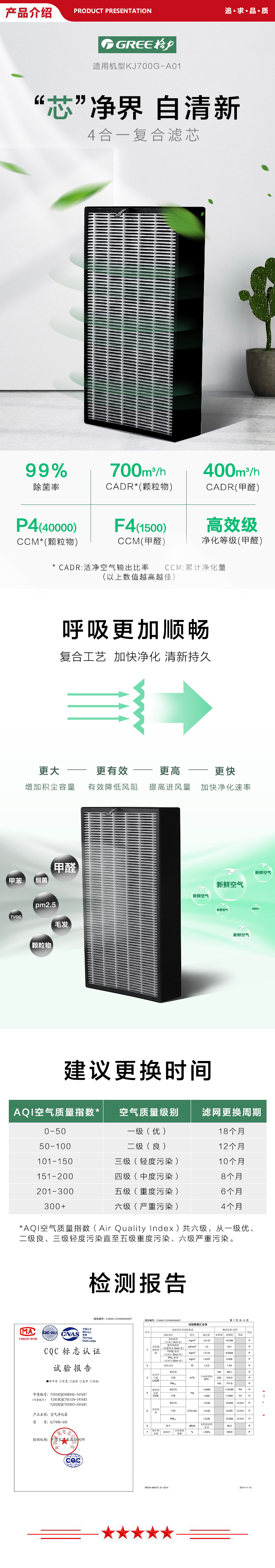 格力 GREE KJ700G 空气净化器原装滤网复合滤芯 适用KJ700G-A01