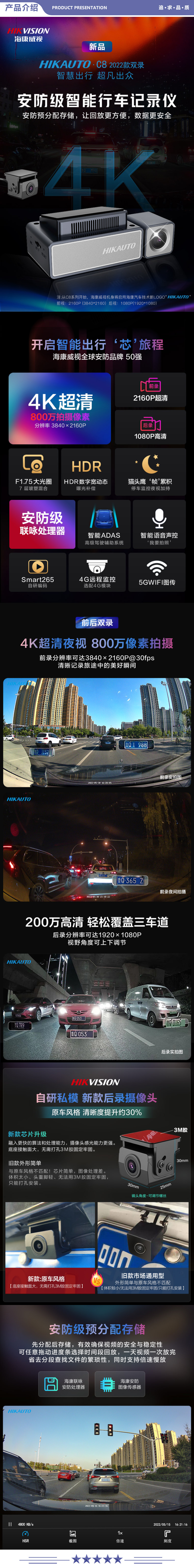 海康威视 C8 智能行车记录仪 高清夜视前后双录4K超清4G远程监控 语音声控智能ADAS+64G卡+降压线 2.jpg