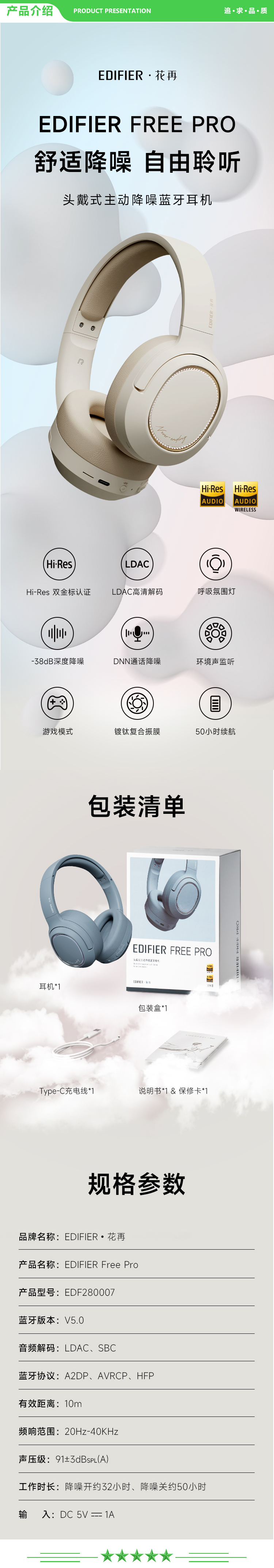 漫步者 EDIFIER Free Pro 主动降噪耳机 头戴蓝牙耳机 手机耳机 音乐耳机 月白 .jpg
