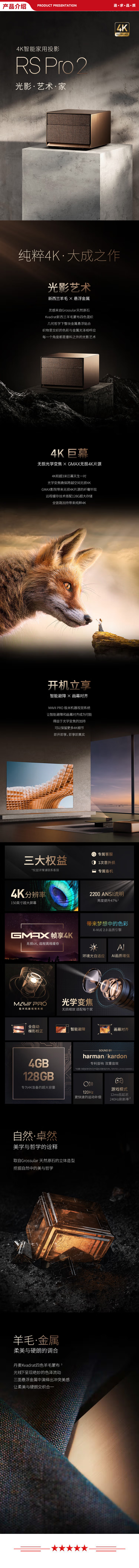 极米 XGIMI RS Pro2 投影仪 4K分辨率 家用投影机(光学变焦 哈曼卡顿专利音响 画面自适应 晨曦金)+多功能便携支架