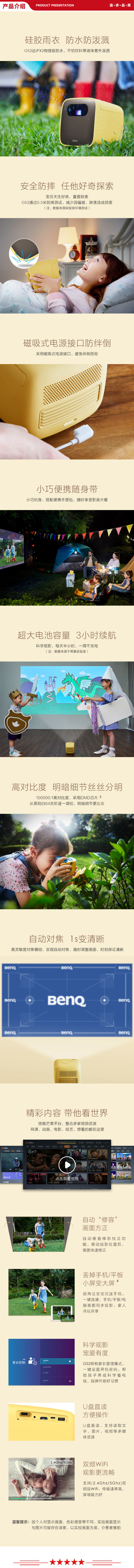 明基 BenQ GS2 三防亲子投影仪 投影机家用(防水防摔防尘 自动对焦 梯形校正 手机投影 内置电池 咖灰)