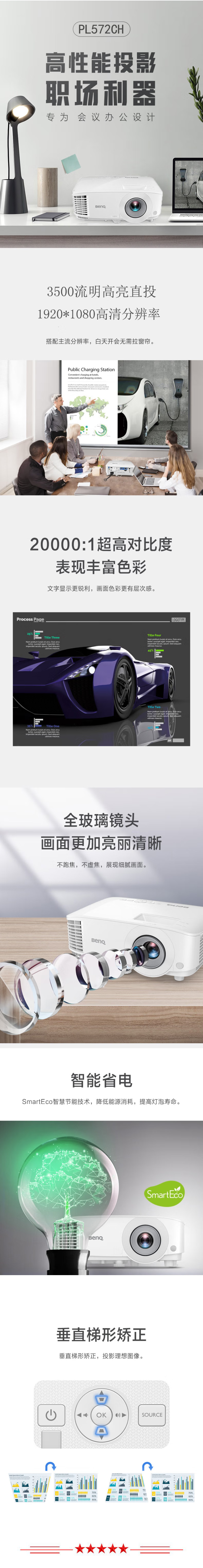 明基 BenQ PL572CH 投影仪 高清投影机 办公家用教学(3500流明 1080P高清 白天直投)