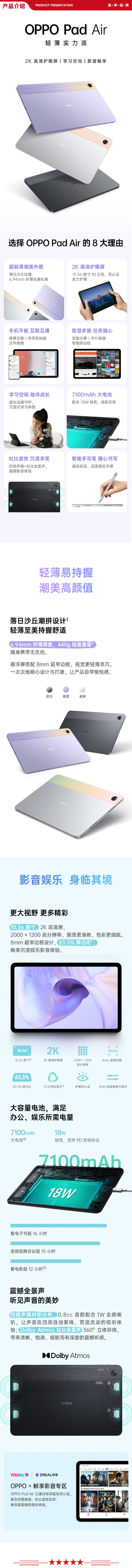OPPO OPD2102 平板电脑 Pad Air 10.36英寸 6+128GB 2K高清护眼屏 7100mAh 跨屏互联 商务办公 网课学习 雾灰