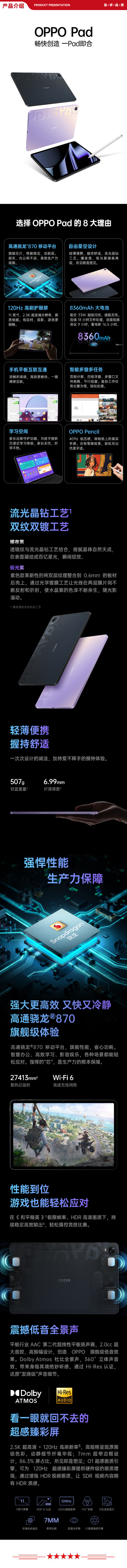 OPPO OPD2101 平板电脑 Pad 11英寸 2.5K 120Hz高刷护眼屏 8360mAh 骁龙870 8+256GB 商务办公 学生网课 耀夜黑