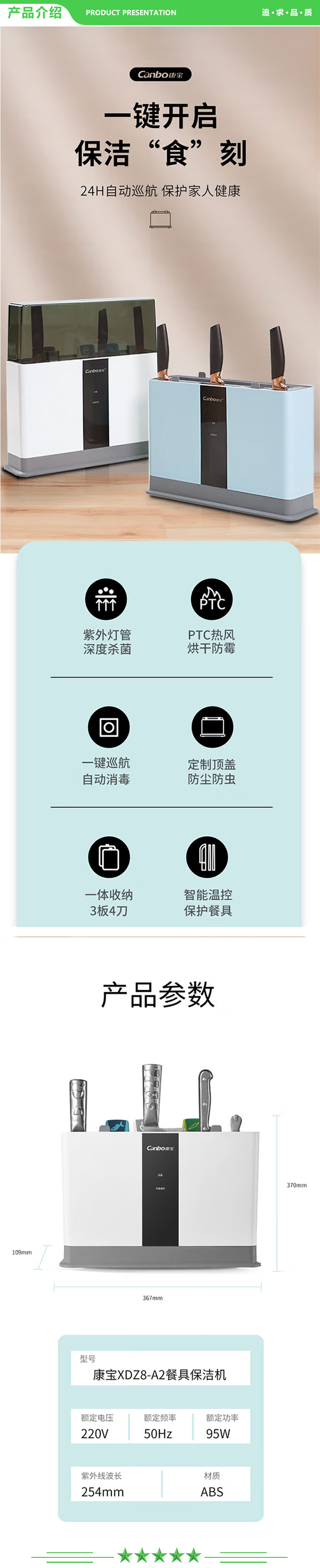 康宝 Canbo XDZ8-A2(1)除菌刀架 刀具砧板筷子除菌机消毒器 无菌储存 厨房置物架 筷子筒 紫外线热风烘干 .jpg