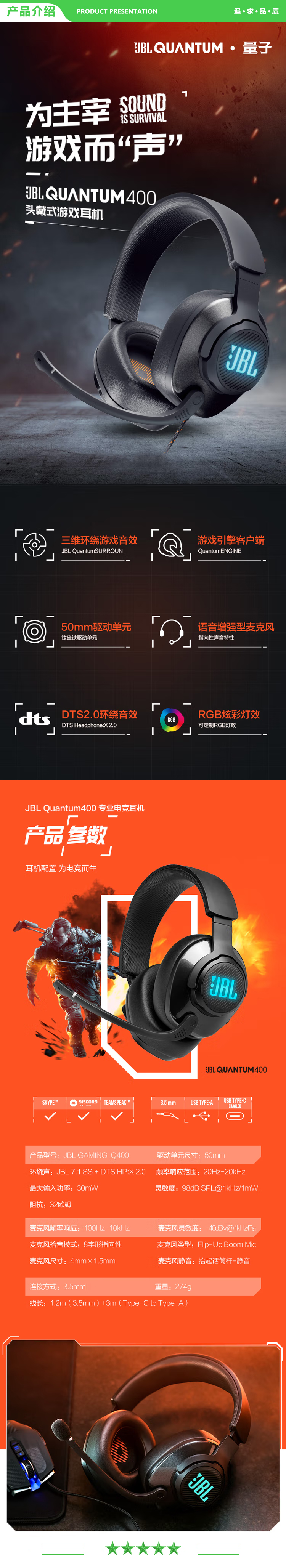 JBL Q400 量子风暴 头戴式游戏耳机 QUANTUM有线电竞耳麦手机电脑耳机带麦克风7.1环绕声吃鸡耳麦 黑色 .jpg