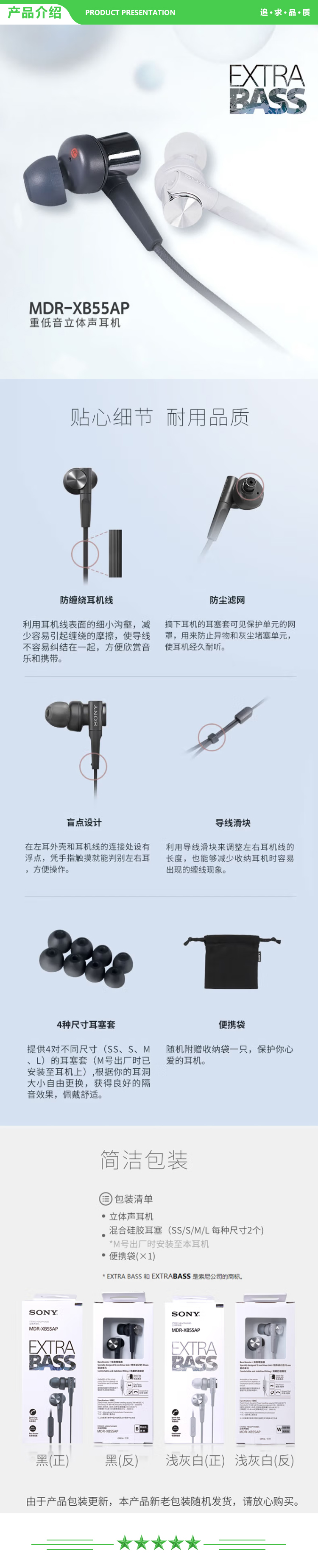 索尼 SONY MDR-XB55AP深邃重低音入耳式手机通话耳机耳麦 深邃低音 线控通话 实物偏灰 浅灰色 .jpg