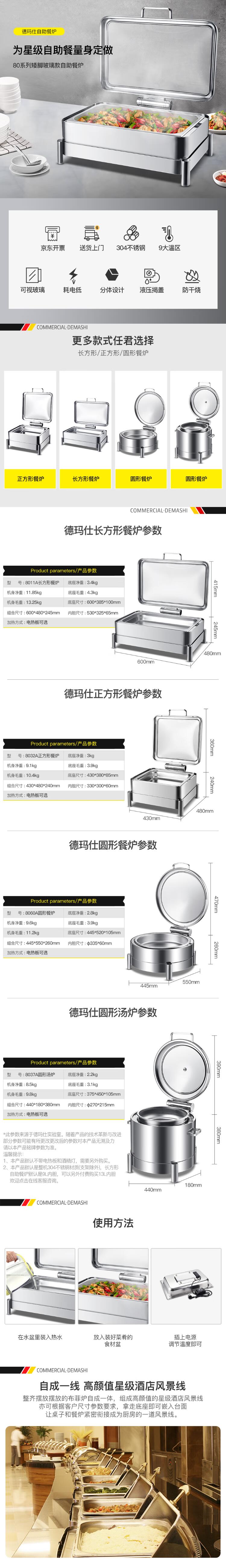 德玛仕 DEMASHI 304-8060A 自助餐炉 布菲炉 电加热酒精灯炉 揭盖式 高端工程款 304不锈钢6升圆形