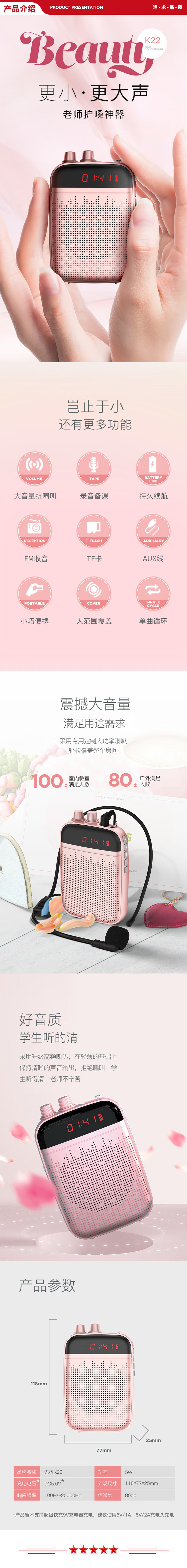 先科 SAST K22 小蜜蜂有线扩音器 教学专用教师导游腰挂便携式喇叭 大功率可插卡播放器 黑色