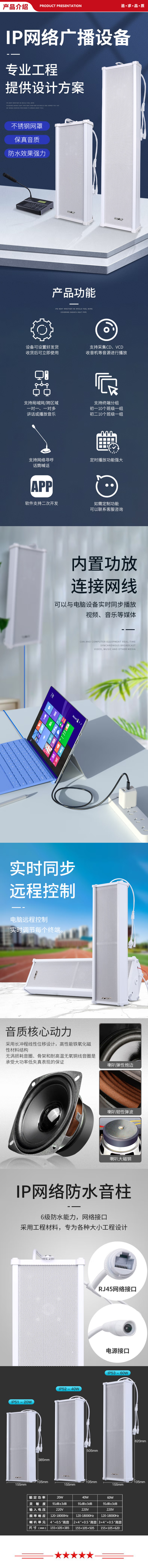 先科 SAST IP-53 广播系统室外防水音柱 壁挂音响 远程数字双向对讲面板 60W网络音柱