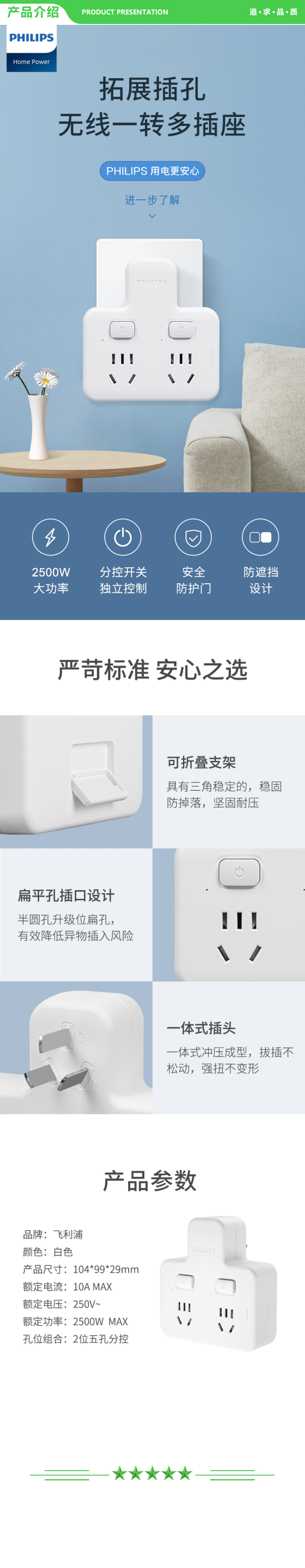 飞利浦 PHILIPS SPB3020W 93 新国标转换插头品字形分控一转二插座 一转多保护门 无线转换插座 扩展转换器 .jpg