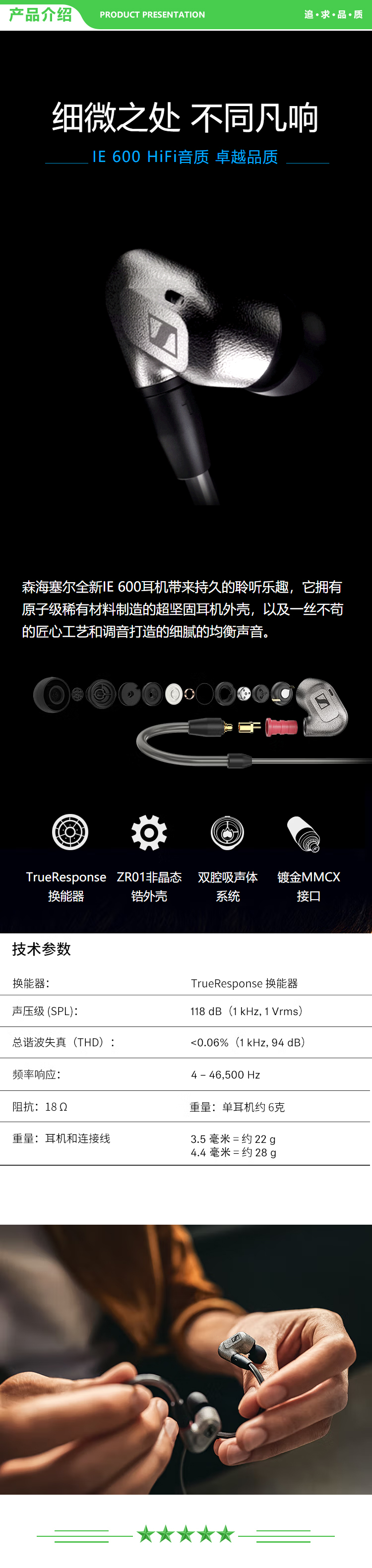 森海塞尔 Sennheiser IE600 金属色 高保真HiFi音乐耳机 非晶态锆外壳 可拆卸MMCX耳机线 有线入耳式耳机  .jpg