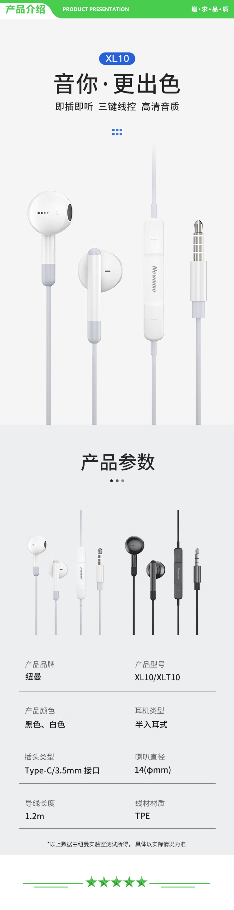 纽曼 Newmine XL10 白色 线控音乐手机耳机半入耳式有线耳机耳麦3.5mm接口 电脑笔记本手机通用 .jpg