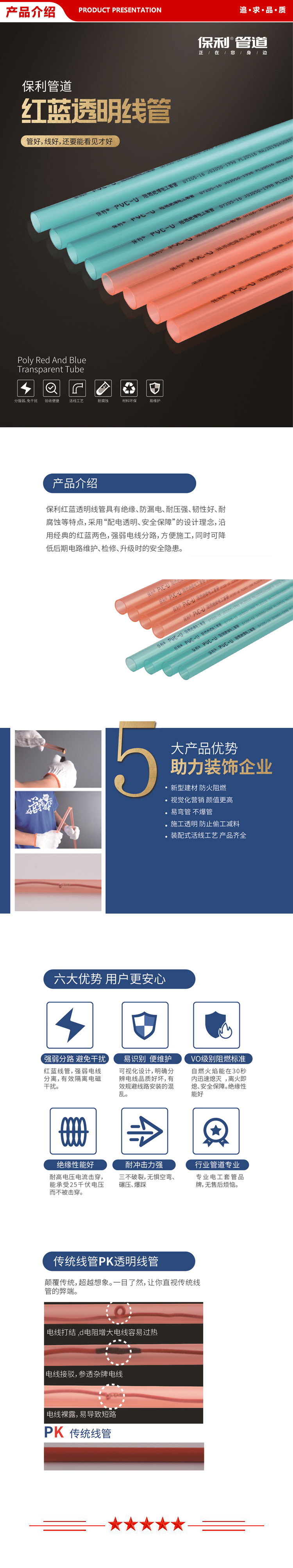 保利 Φ20 PVC透明线管配件 杯梳(红)100只/包