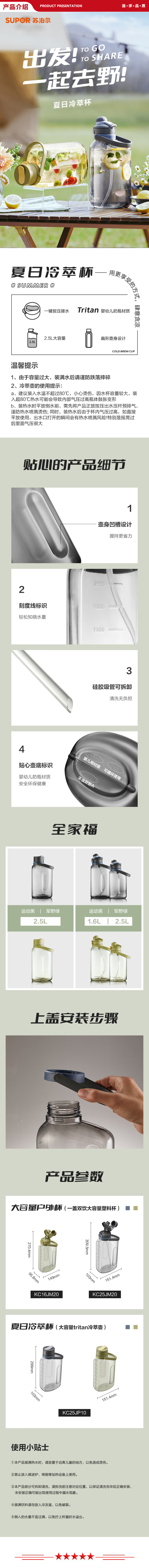 苏泊尔 SUPOR KC25JP10 冷萃壶 Tritan凉水杯 大容量运动水壶 2.5L 运动黑