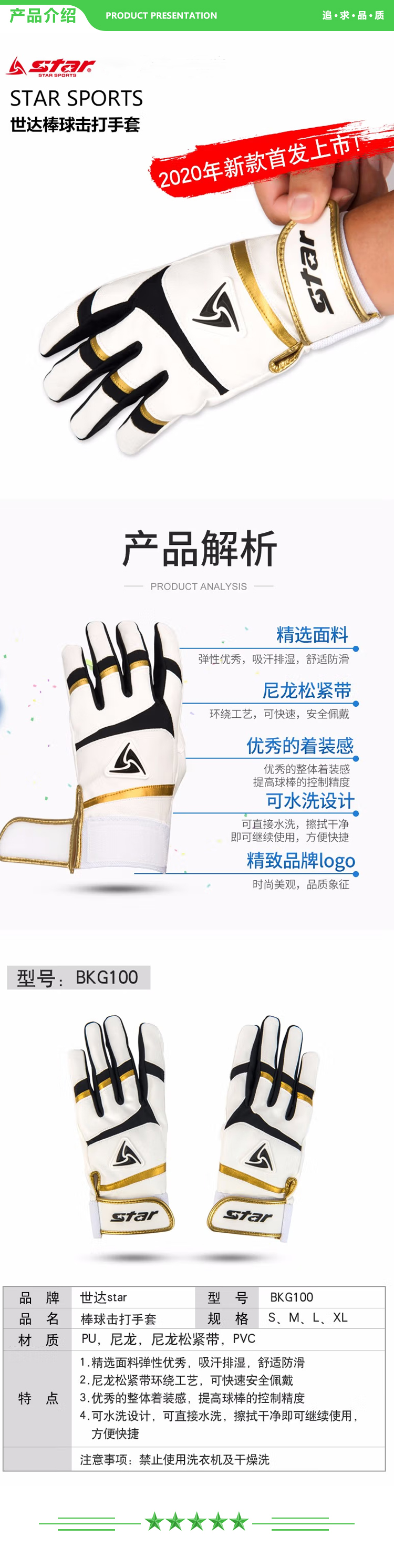 世达 star BKG100 M(长18.5-19cm 掌宽9cm)棒球打击手套舒适防滑耐磨垒球击打手套骑行手套  .jpg