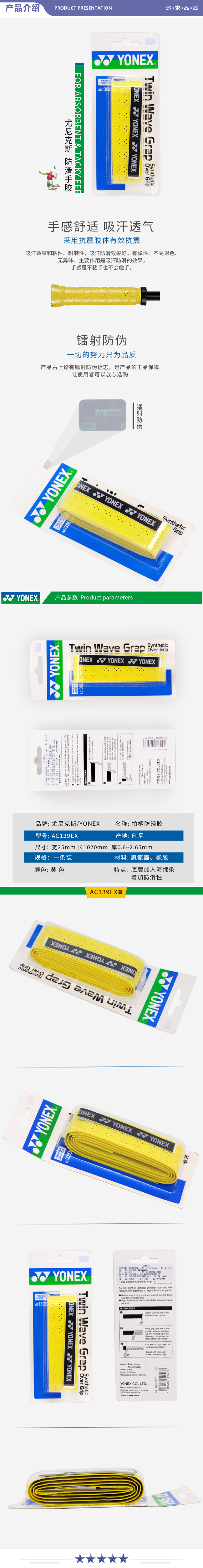 尤尼克斯 AC-139EX-440 羽毛球拍手胶双波浪型网格龙骨手胶单条橘黄 2.jpg