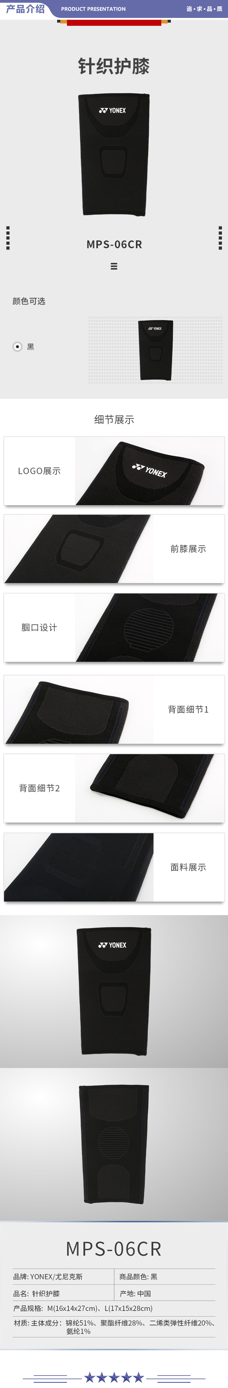 尤尼克斯 MPS-06CR-007 跑步健身羽毛球网球专业运动护具护膝黑色L码 2.jpg