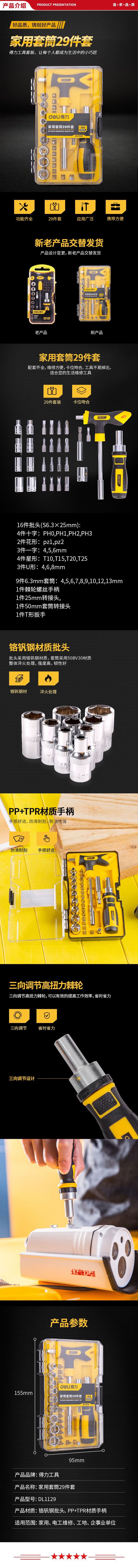 得力 deli DL1129 棘轮螺丝刀套装T型扳手套筒转接头组套29件套