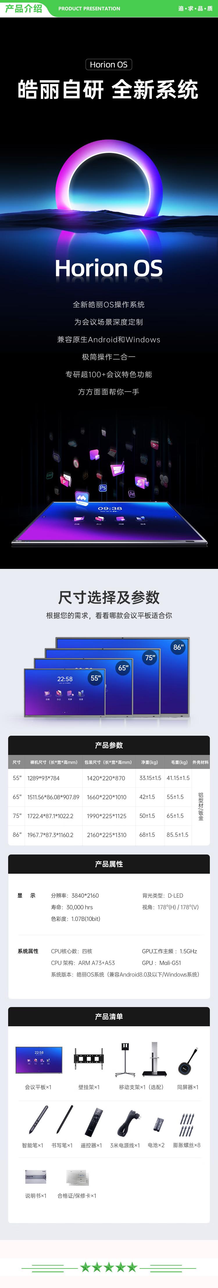 皓丽 E55 企业版55英寸+同屏器智能笔+支架 会议平板 交互式电子白板 教学办公4K触摸投影智慧大屏 2.jpg