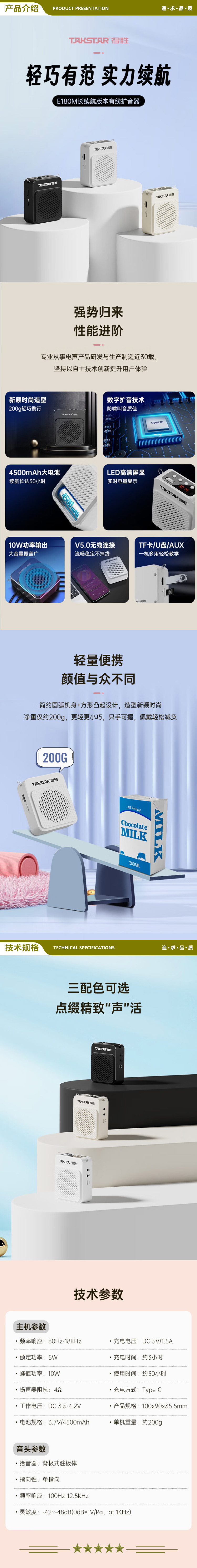 得胜 TAKSTAR E180M 长续航小蜜蜂扩音器教师专用 大功率导游腰挂摆摊防啸叫喇叭腰麦小音箱 白色 2.jpg