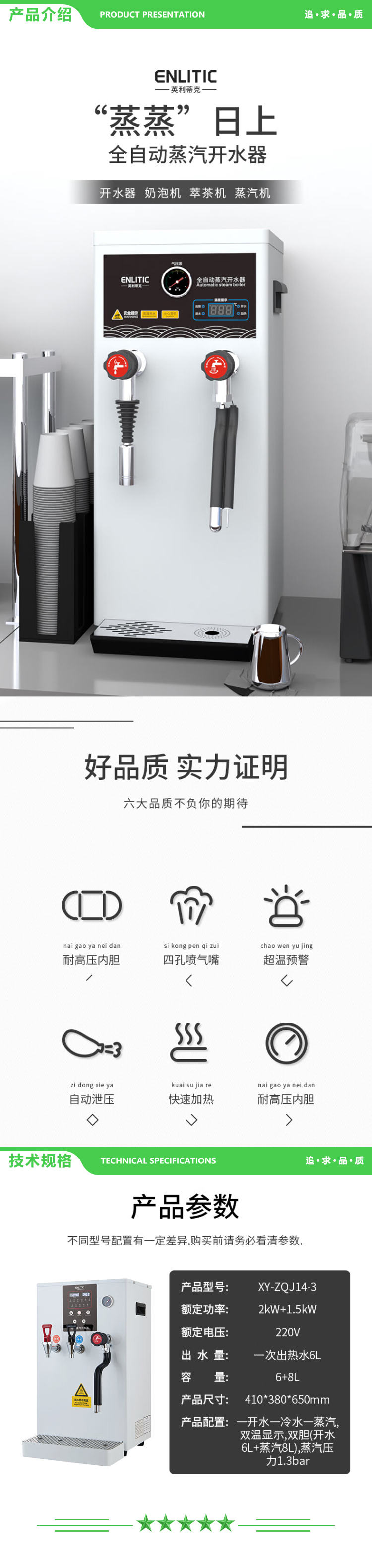 英利蒂克 Enlitic XY-ZQJ14-3 蒸汽开水机奶泡机萃茶机开水器商用 全套打奶泡咖啡