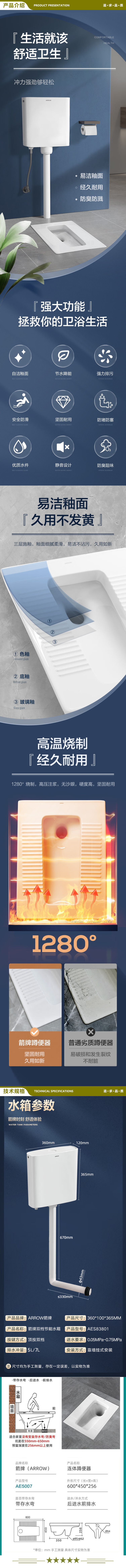 箭牌 ARROW AE5007-1E 节水蹲便器防臭大冲力家用蹲坑便池卫浴卫生间蹲便器套装 7L大水箱-带存水弯256深度 2.jpg