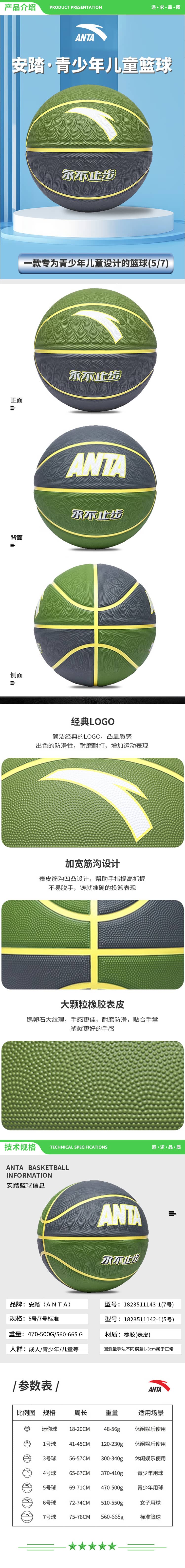 安踏 ANTA 1823511142-1 黄绿色 篮球5号 比赛室内外耐磨水泥地幼儿小学生青少年户外橡胶五号 2.jpg